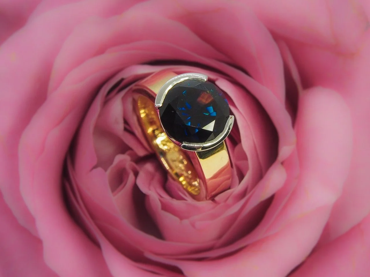 CENTRAL QUEENSLAND GEM FIELDS SAPPHIRE 70TH BIRTHDAY GIFT This ring was designed in collaboration with a couple to celebrate and commemorate her 70th birthday. The 4.82ct natural untreated sapphire originated in the Central Queensland Gemfields. It was a lovely deep blue colour with a slight Pharoah’s eye which is a minor yellow zone. We created a design inspiration board to get an idea of preferred styles, then refined it into a beautiful and practical design that the owner loved.